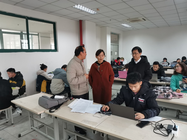 校赛期间,副校长刘育红和校技能大赛总教练周自宝亲临现场予以指导。刘育红详细询问了今年赛题的选题背景、数学建模所需要的知识、建模的流程、队员之间的分工协作等细节问题,并勉励参赛队员要勇于挑战迎难而上,用顽强毅力和拼搏精神交出一份圆满的答卷。在与师生的交流之后,刘育红对数学建模在学生解决问题的动手能力、团队协作中的大局意识培养和学生学业与职业生涯可持续发展的重要意义予以充分肯定。周自宝教练分享了大赛参赛的经历和经验,并就参赛队员的选拔机制、集训形式、师生磨合等大赛的诸多细节与师生充分交流。