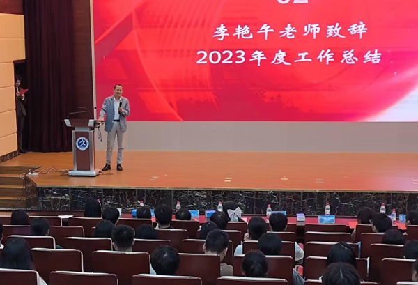 然后,李艳午代表数学建模教练组对我校2023年度数学建模工作进行了总结。梳理了本年度的参赛情况,总结了所取得的成绩;全面分析了教练组成员自身的能力瓶颈、学生队员的动手能力欠缺、我校与省内外同类院校的差距等方面的问题;结合自身二十余年数学建模竞赛的亲身经历,谈了自己对数学建模的感悟,勉励在场同学保持初心坚持热爱,以无畏的勇气在数学建模领域逐梦前行。