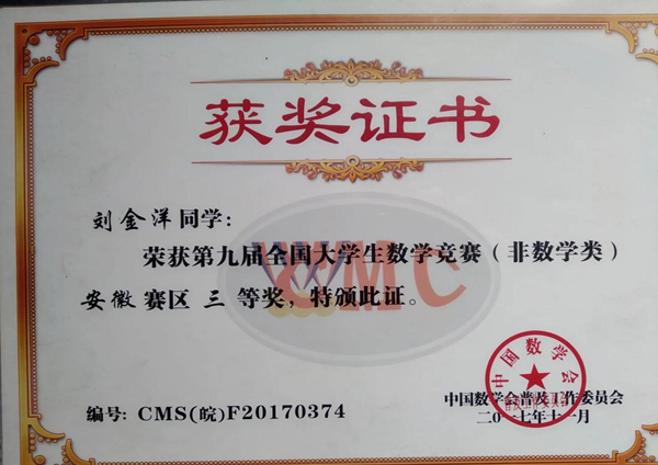 2017年全国大学生数学竞赛三等奖